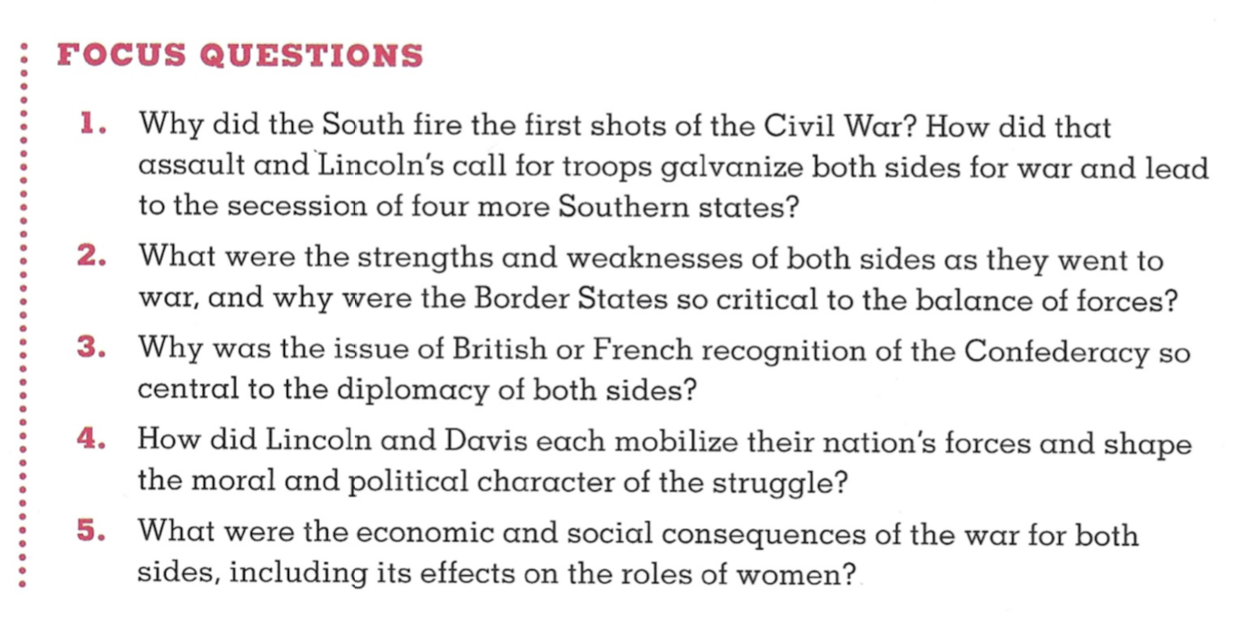 As always, "Focus Questions" should guide your reading and notes, but you do not necessarily have to explicitly answer them.