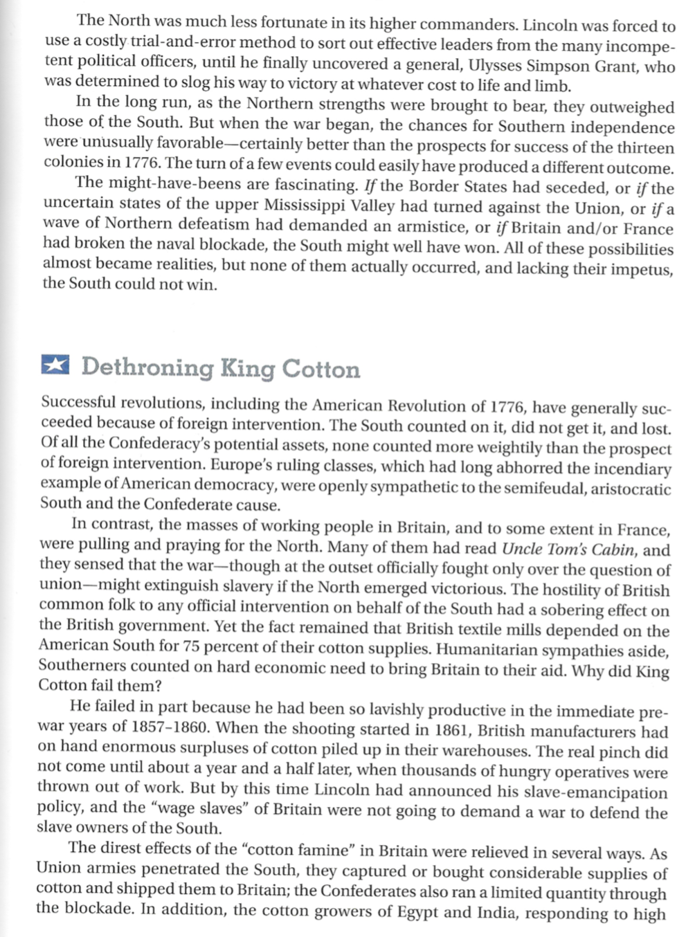 According to the passage, an asset that the South counted on at the start of the Civil War that never materialized was