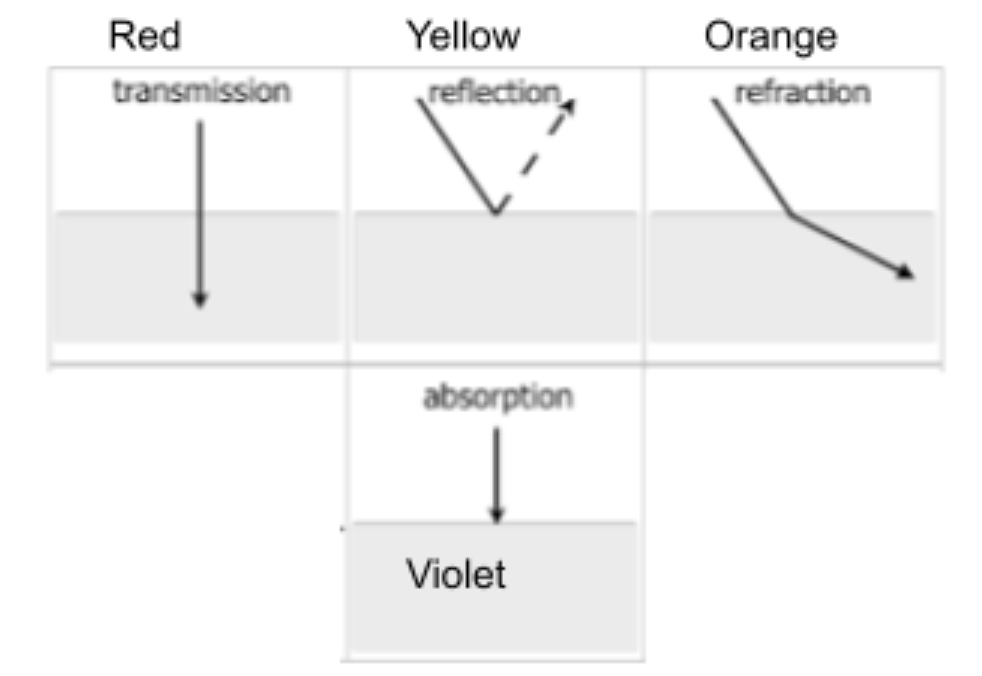 In an experiment Aidan is trying to identify how different types of color interact with different colors of paint. Below shows the 4 different ways light can interact with a material. Aidan wants the paint to last as long as possible without changing, fading.