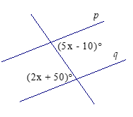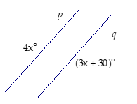 Lines p and q are parallel. Solve for x.