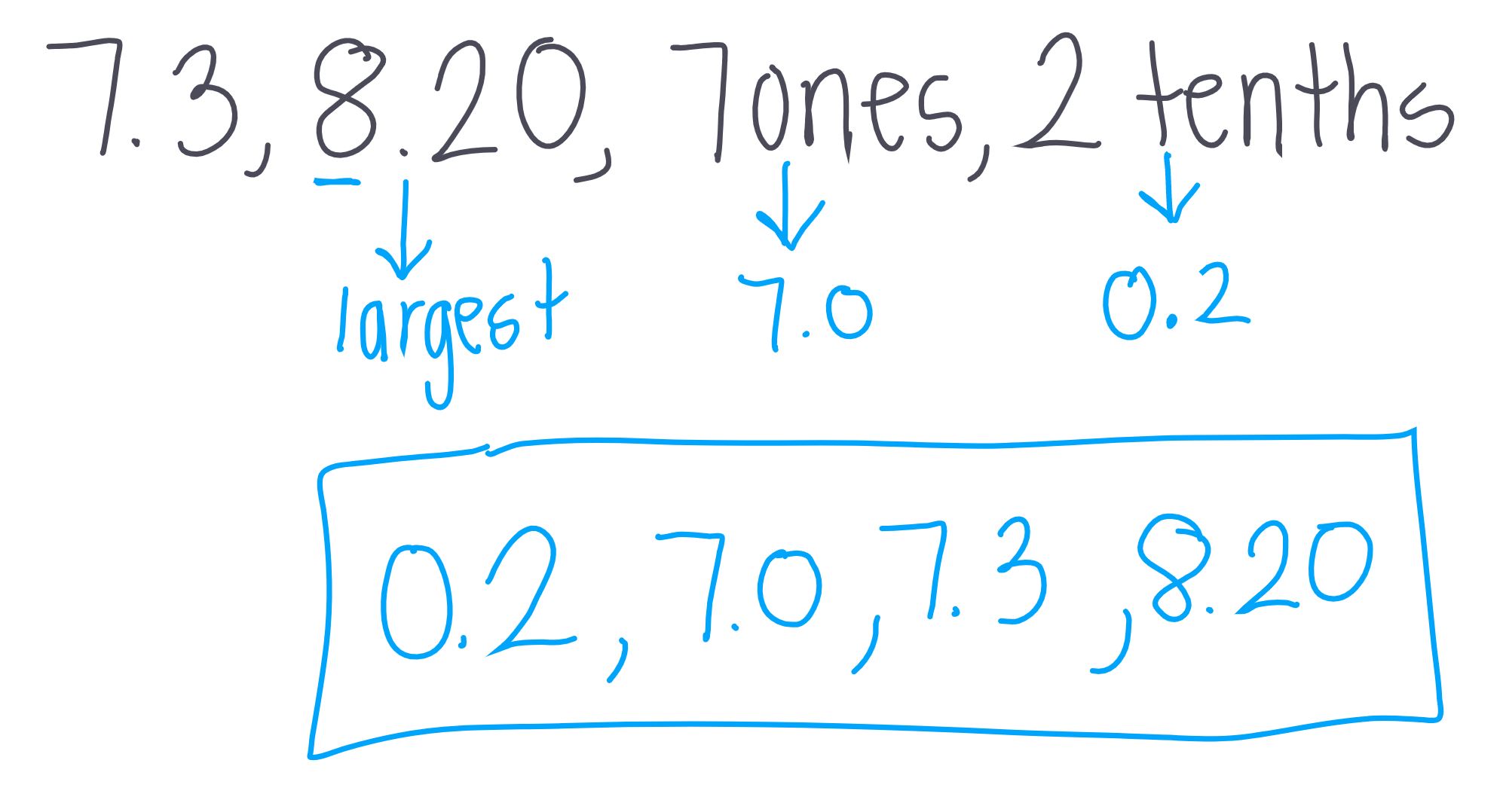 Arrange the numbers below from least to greatest in decimal form.5.6 , 6.15 , 6 ones , and 5 tenths