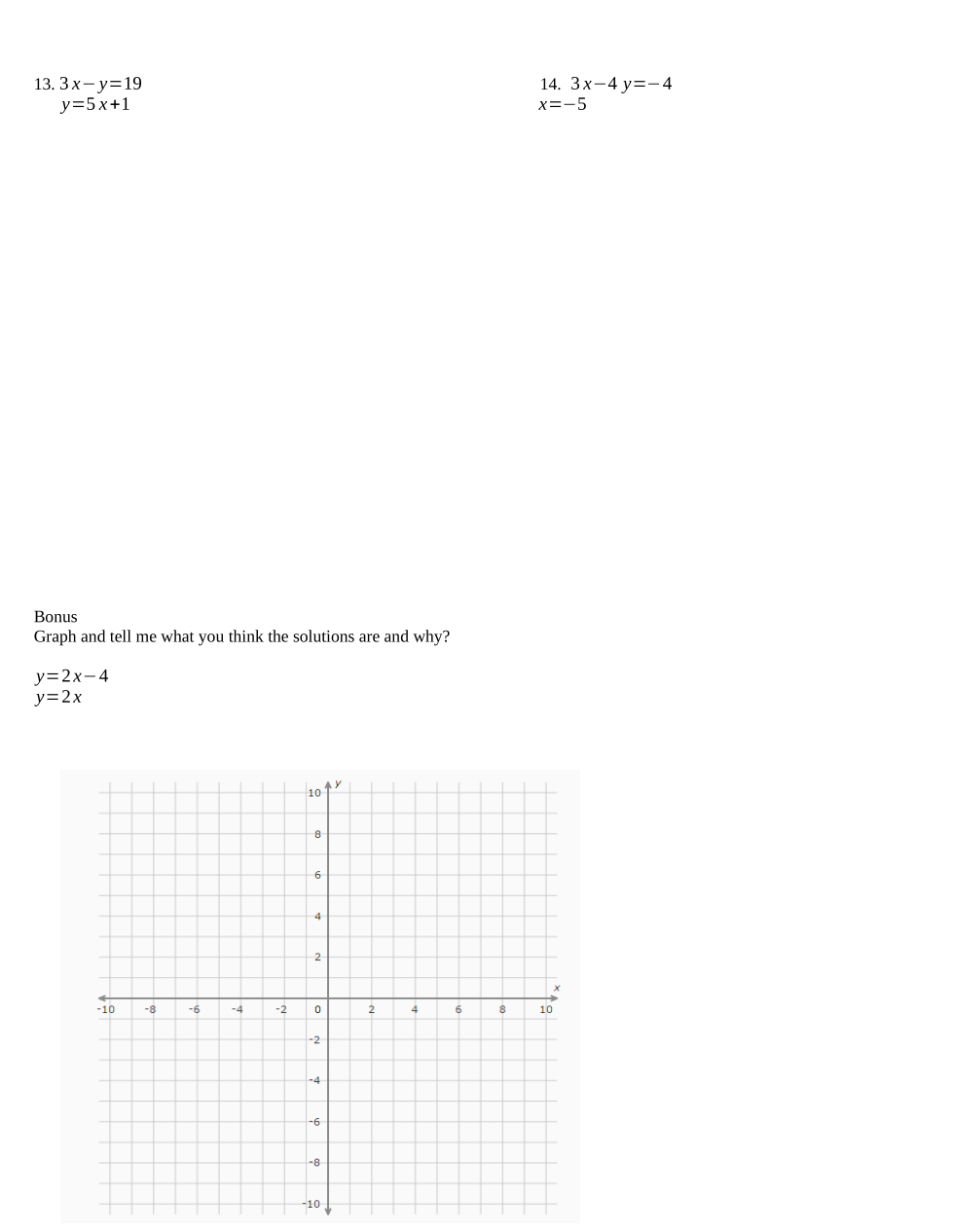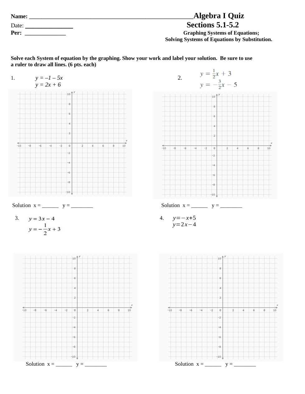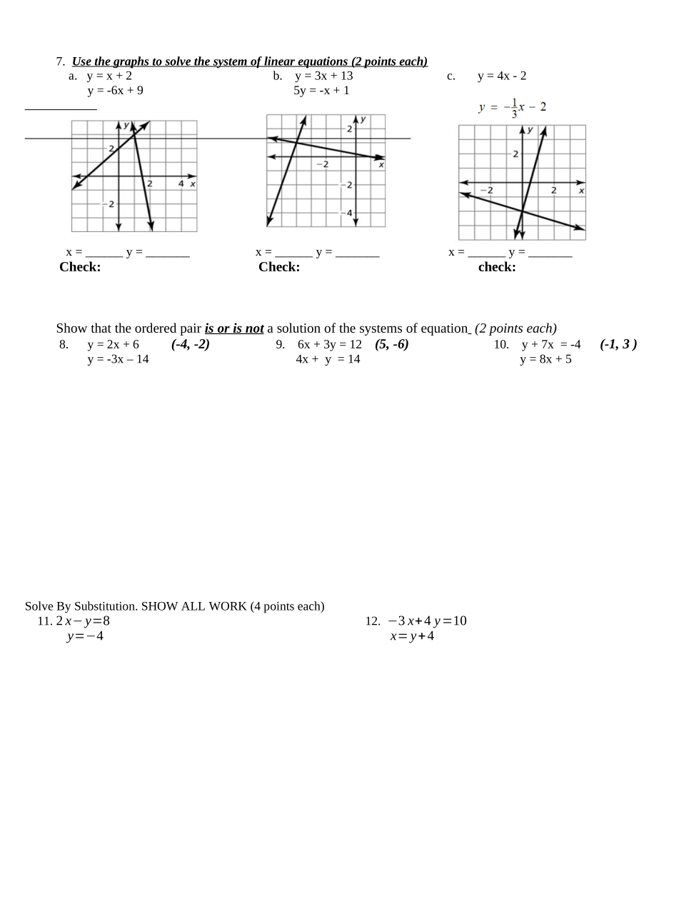 NBHS Systems of Equations Midunit Test Systems Graphing Substitution