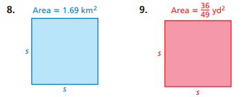 Find the side lengths of each square with the given area.