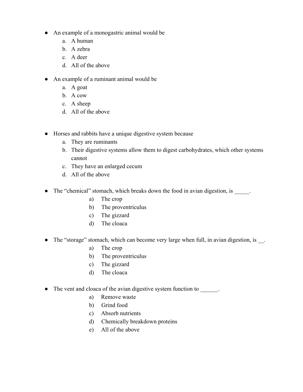 If you choose this question- "Describe how the digestion process of a ruminant is different than that of a monogastric." Answer, below. Otherwise, submit it as blank.