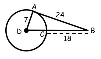 Using the diagram below, find the value of x. BC is a radius of Circle C and AB is tangent to the circle.