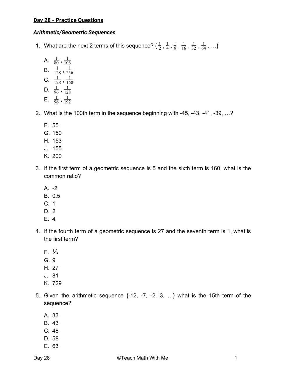 Friday (3/5): Arithmetic/Geometric Sequences HW
