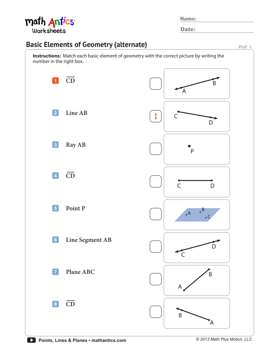 Match the picture (dark blue numbers) to the geometry element on the left (light blue numbers).