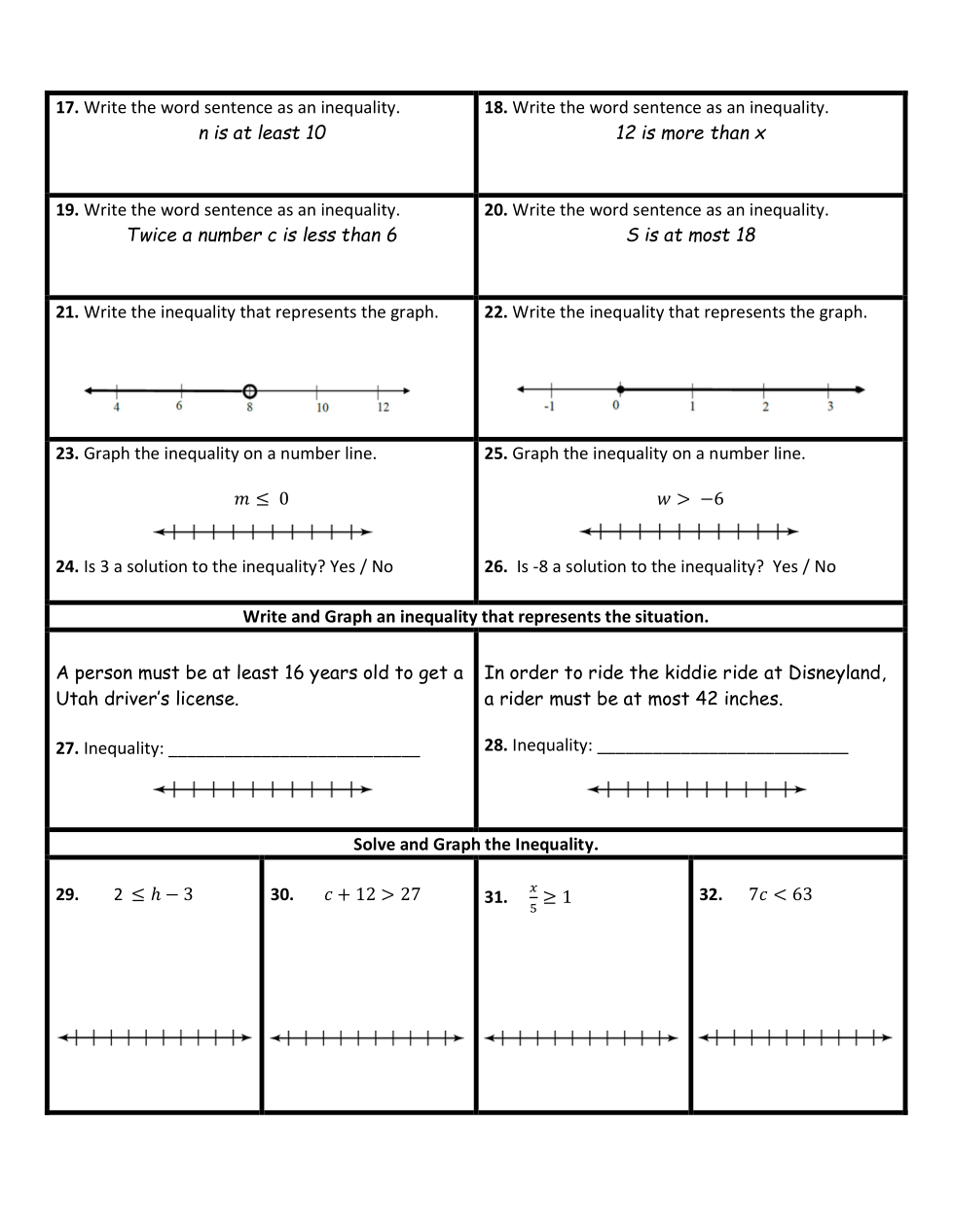 Question #28Write an inequality. Then graph it.Use "x" for the variable. Make sure to label.