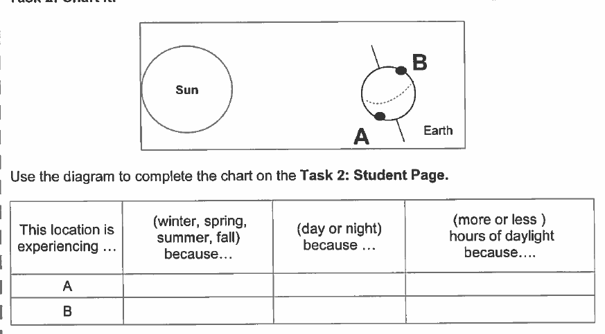 Location A ,More or less hours of daylight ? why?