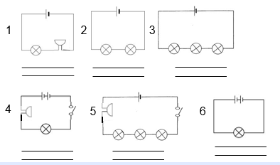 Draw a circuit containing a battery, a bulb, a switch and a resistor.