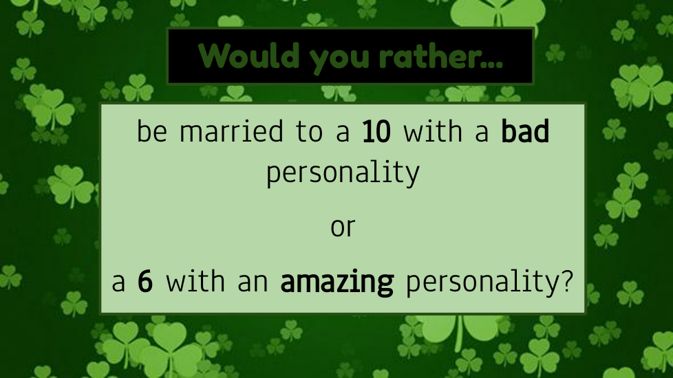 Would you rather be married to a 10 with a bad personality or a 6 with an amazing personality?