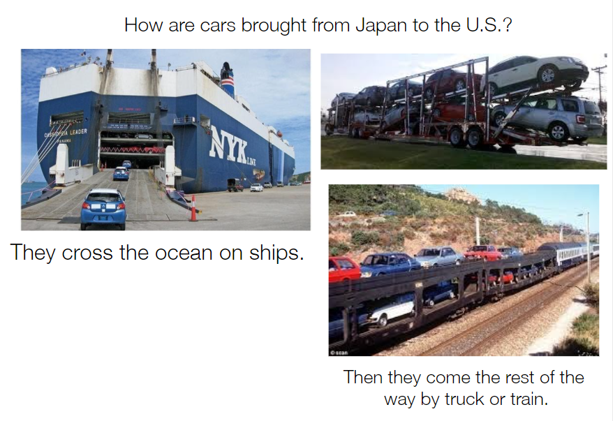 How are cars brought from Japan to the U.S.? Make sure to choose the BEST answer.
