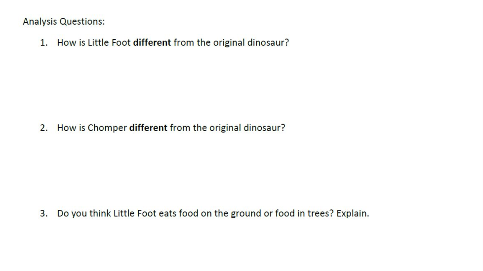 The original dinosaur has a short neck, flat teeth, and short hind legs. How is Little Foot different from the original dinosaur?