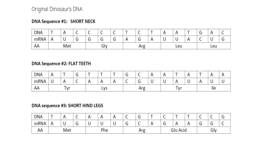 Fill in the Blank: Random ___________ in the original dinosaur's DNA has led to offspring with new traits.