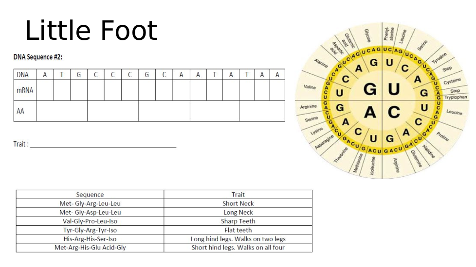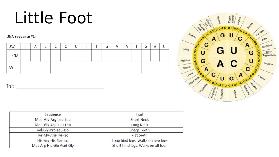 Look at the chart what trait does the DNA sequence code for