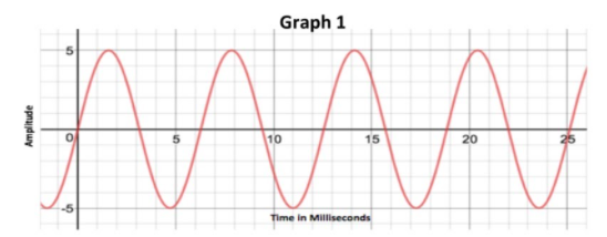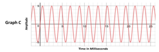 One way you can change the sound is to increase or decrease its frequency. Which of the graphs below shows how Graph 1 would change if you increased only the frequency/decreased wavelength of the wave? Graph _______.