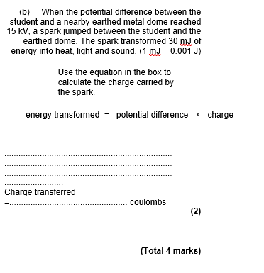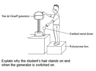 The diagram shows a student touching the metal dome of a Van de Graaff generator.