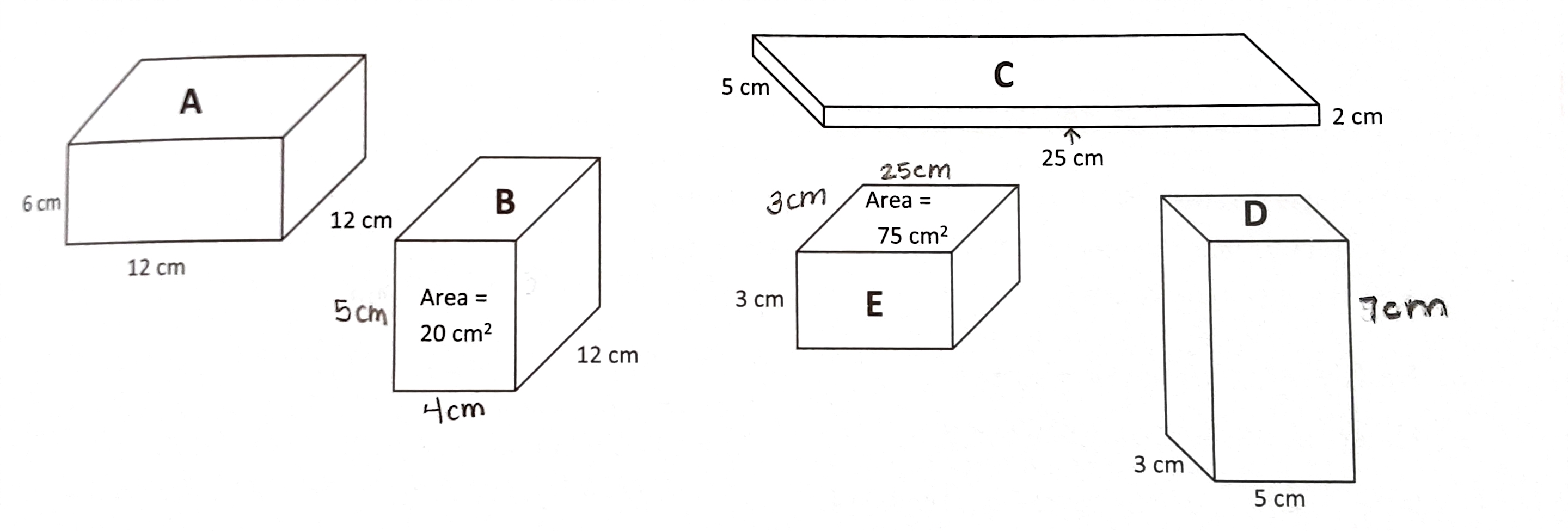 This prism measures 3 units by 4 units by 2 units.