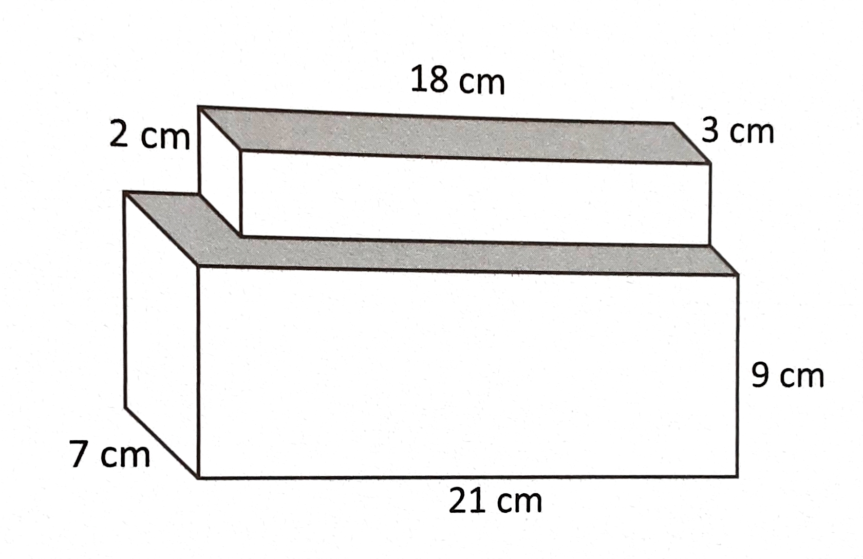 Find the total volume of the figure in cubic centimeters.