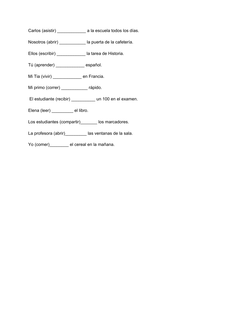 I write sentences in Spanish. Yo _____frases en español.(escribir)