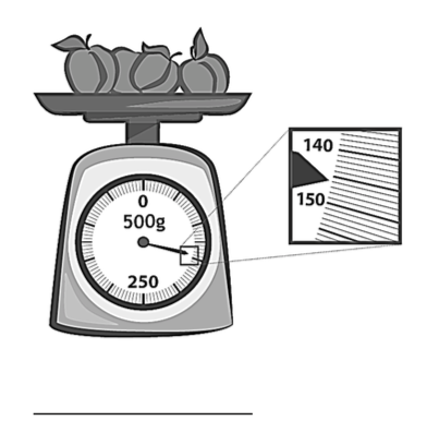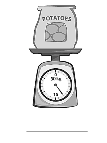 Read and write the weights below. Write the word kilogram or gram with the measurement.
