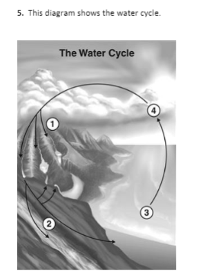 1. The process of water changing from its liquid state to a gas in the water cycle is known as