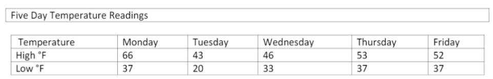 18. Which statement best describes the temperatures shown?
