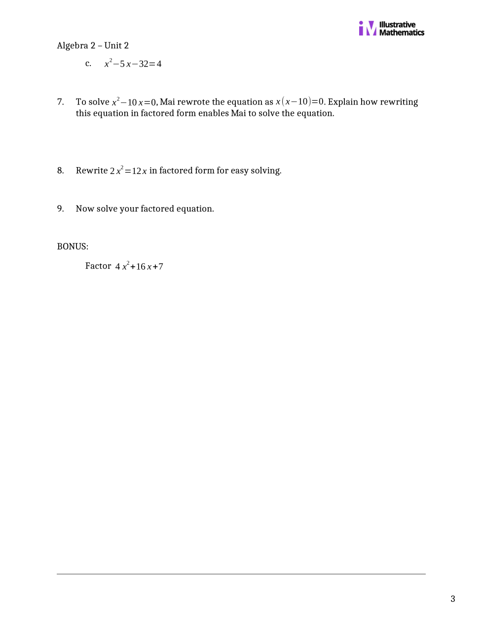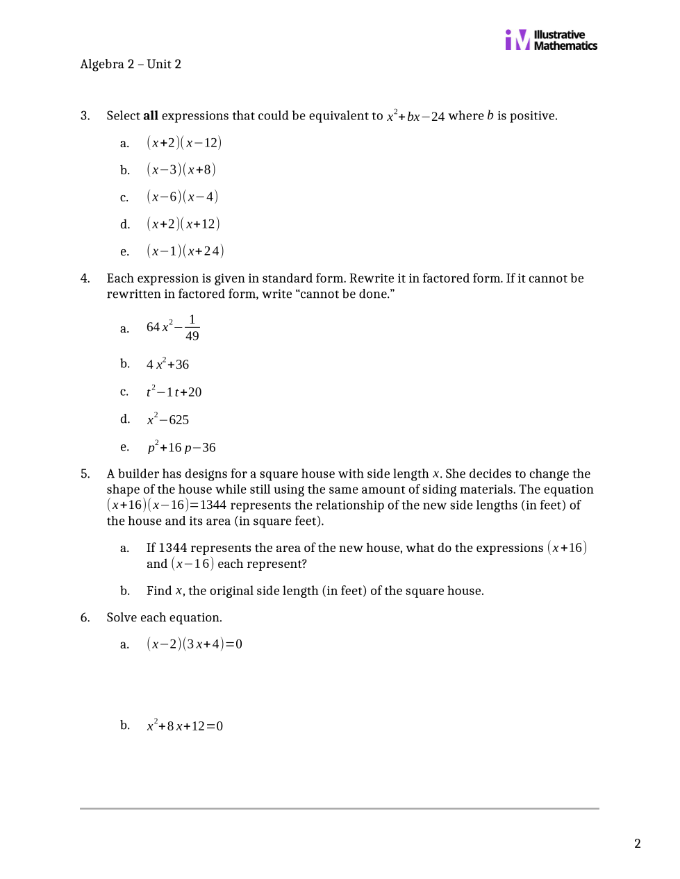 Kelso Math 2A: Unit 2 Review (IM Alg 1 U7.1-10)