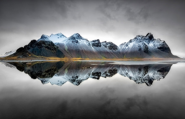 Is the photograph above printed upside down? What is real, and what is reflection? Explain your answer using your own words.
