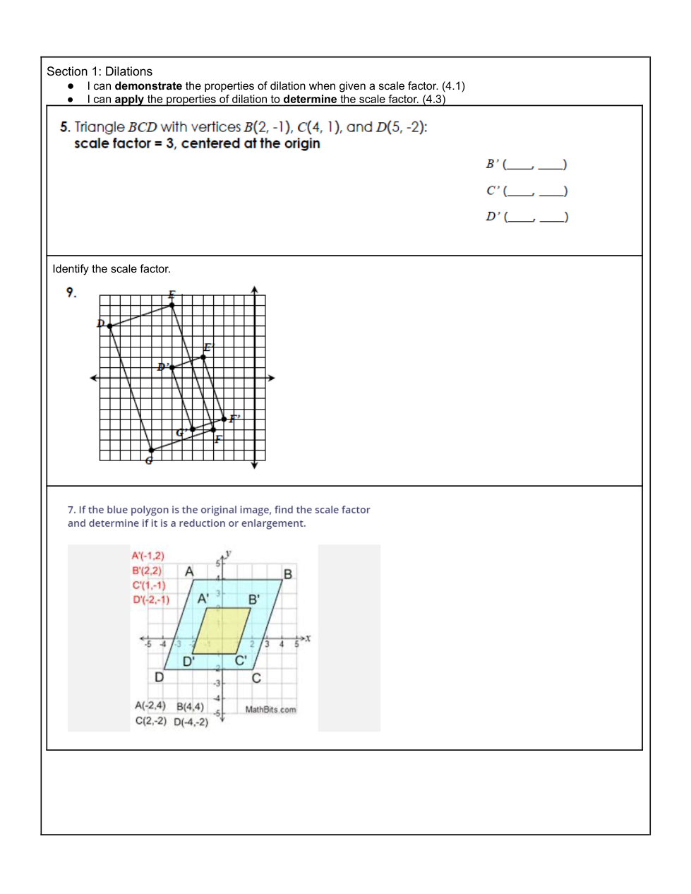 Find the coordinates for B', C' and D' after dilating by a scale factor of 3. (Show ALL Your Work for each coordinate point)