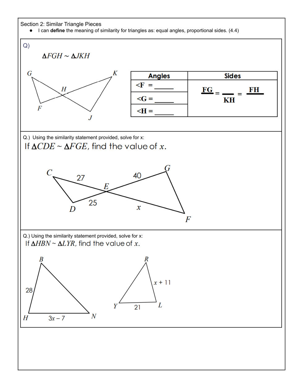 Find the value of x. (Show your proportions and ALL your work)