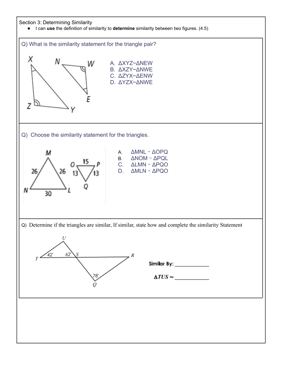 Choose the similarity statement for the triangles