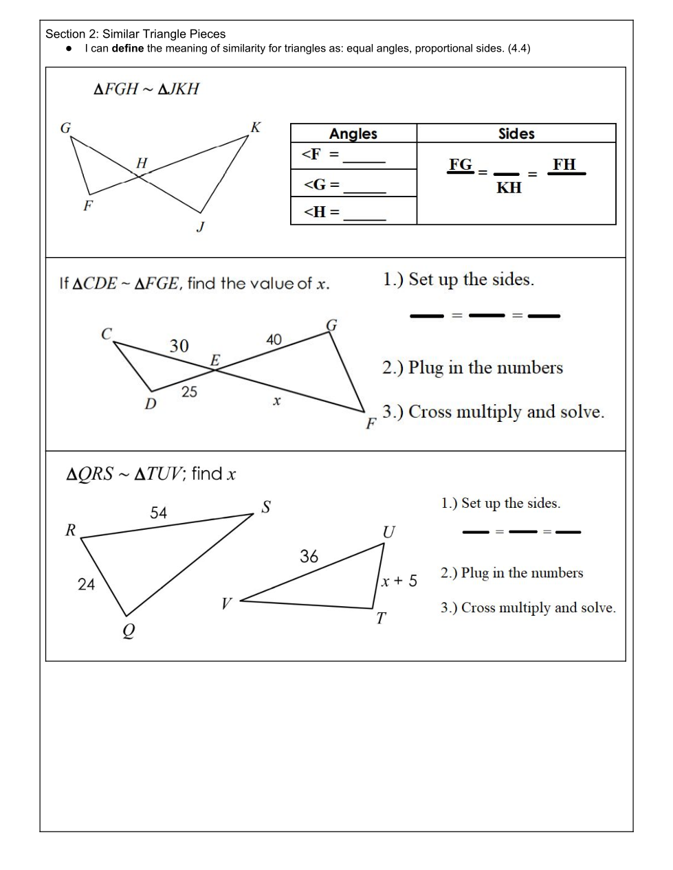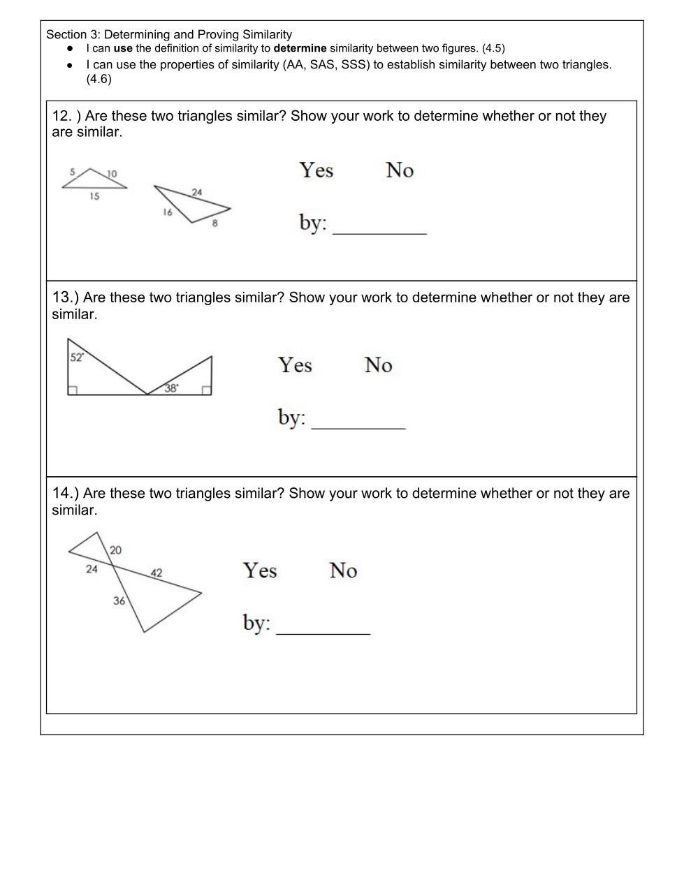 Draw the triangles on your paper and show your work to prove similarly. Then take a picture of it and put it here.