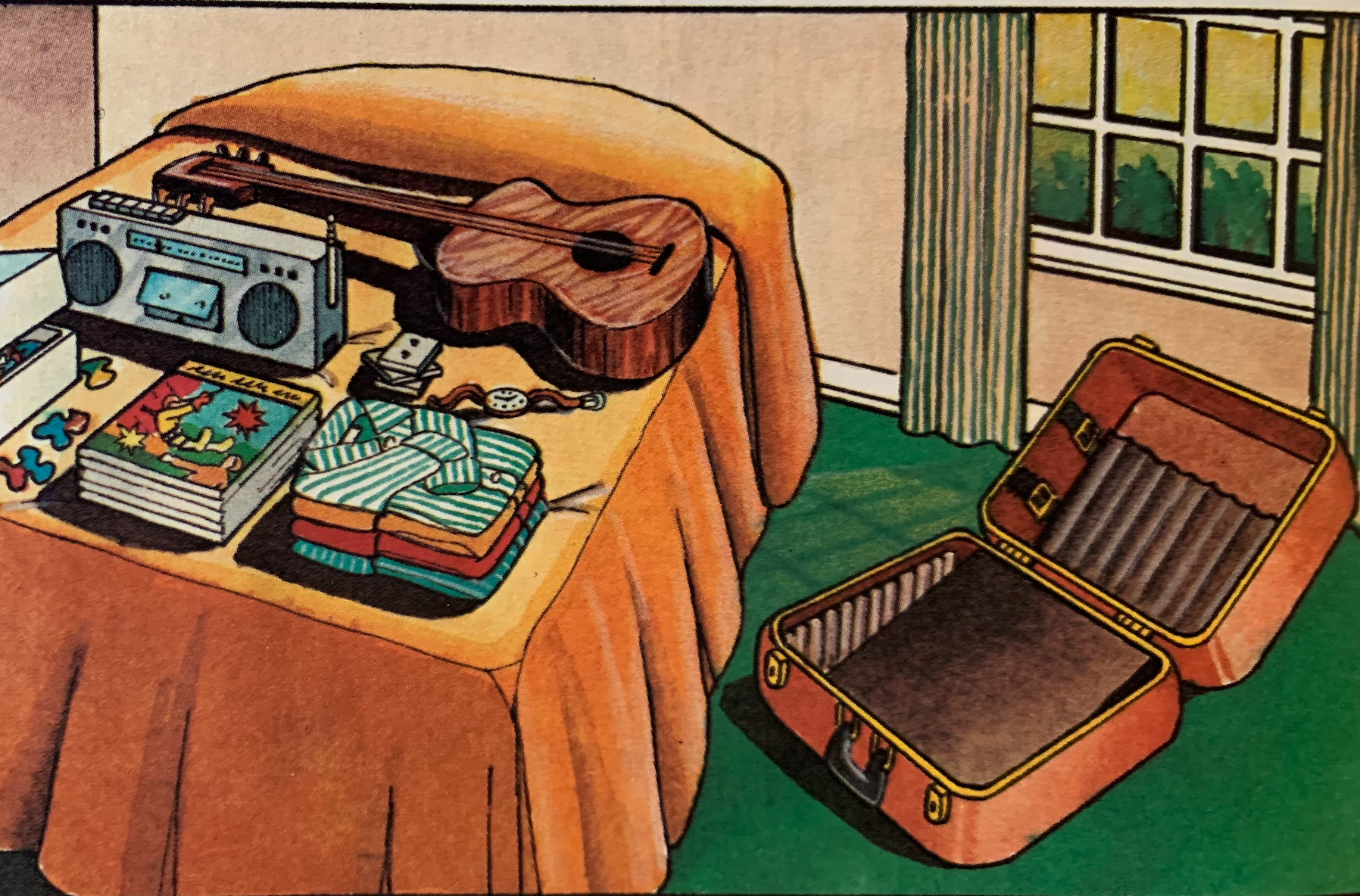 Situation: Carlos's grandmother wants to make sure he does not forget anything for his trip. Look at the picture of the items he has prepared, and tell how Carlos responds to each of her questions.