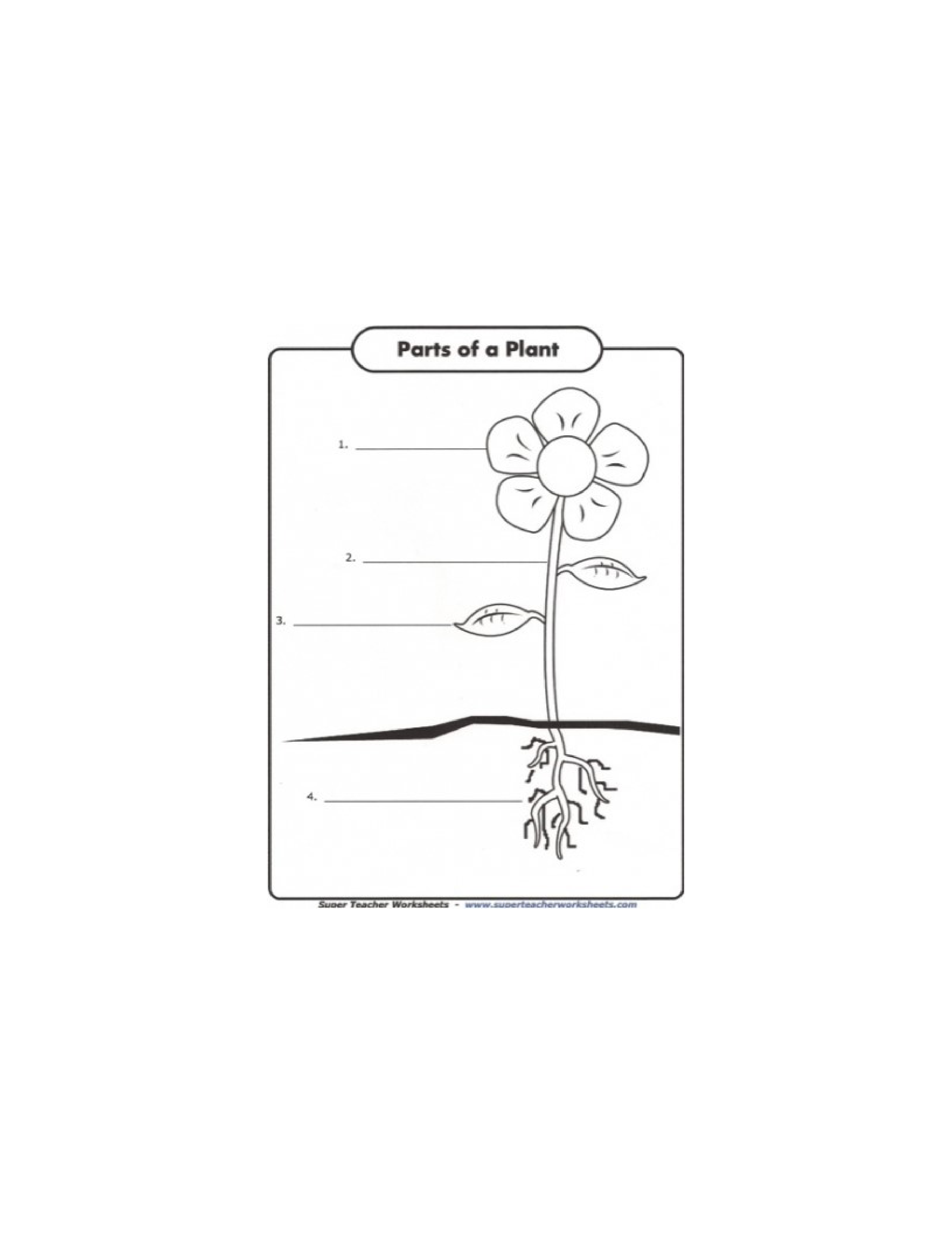 Lable the parts of the plant:Roots, Flower, Leaves, Stem