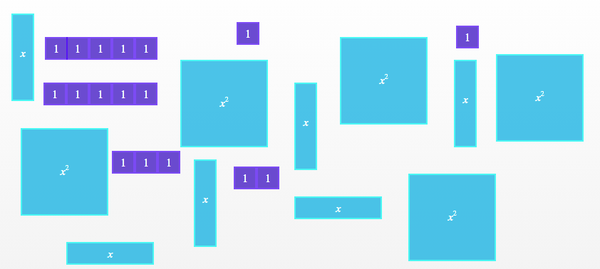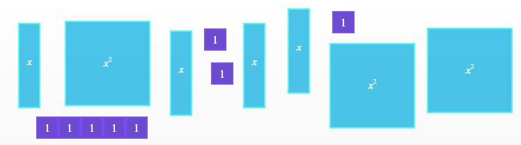 Match the following groups of algebra tiles with the algebraic expression that represents their area.