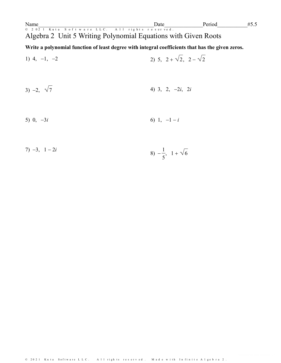 Write a polynomial of least degree with integral coefficients that has the given zeros.