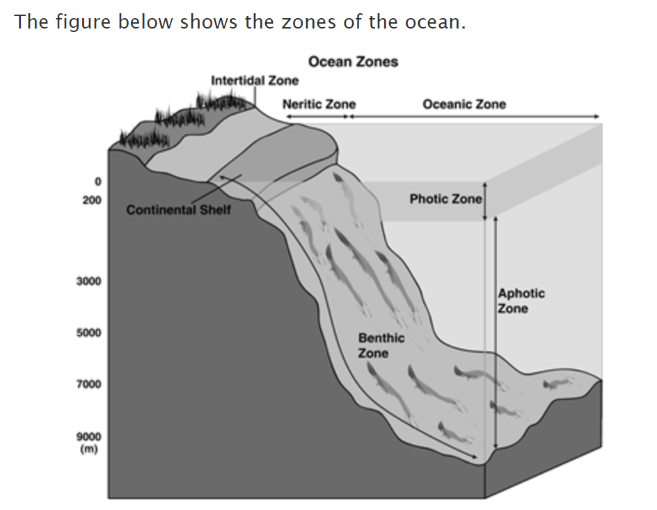 Coral reefs require sunlight because reef-building coral contain photosynthetic algae in their tissues. The reefs must sit on the ocean floor for support and must remain underwater to survive. In which ocean zone does a reef most likely thrive?