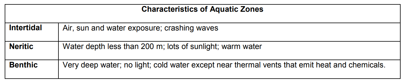 The distribution of life in aquatic ecosystems is determined by geography, light, depth, temperature, salinity, and dissolved oxygen.