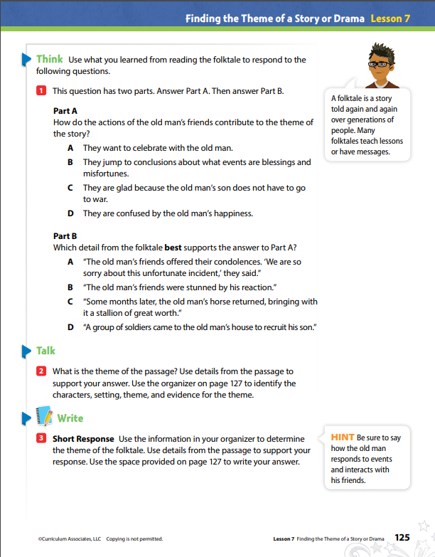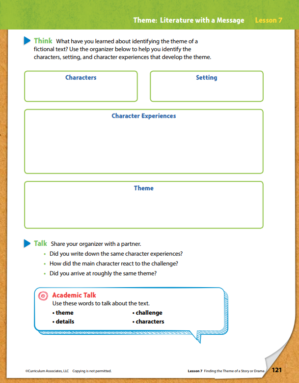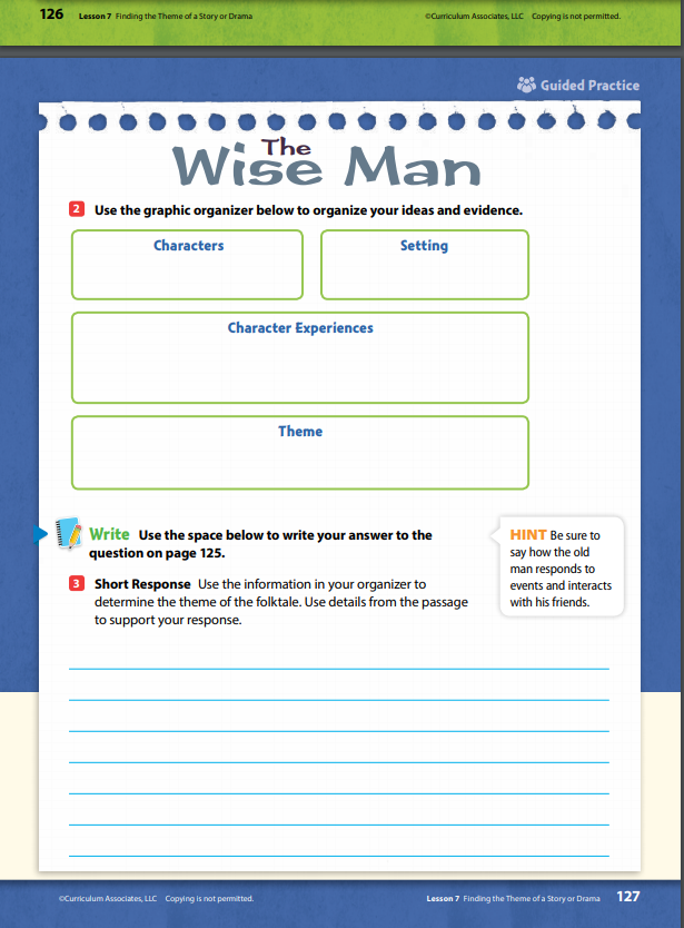 Use the information in the organizer to determine the theme of the folklore. Use details from the passage to support your reponse. Remember to have an introduction, supporting details and a concluding sentence.