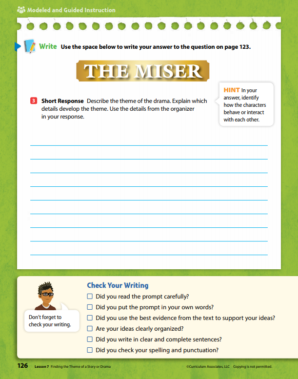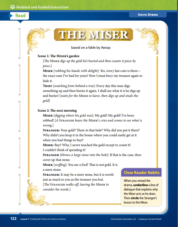 Underline a line of dialogue that explains why the Miser acts as he does. Then circle the Stranger's lesson to the Miser.
