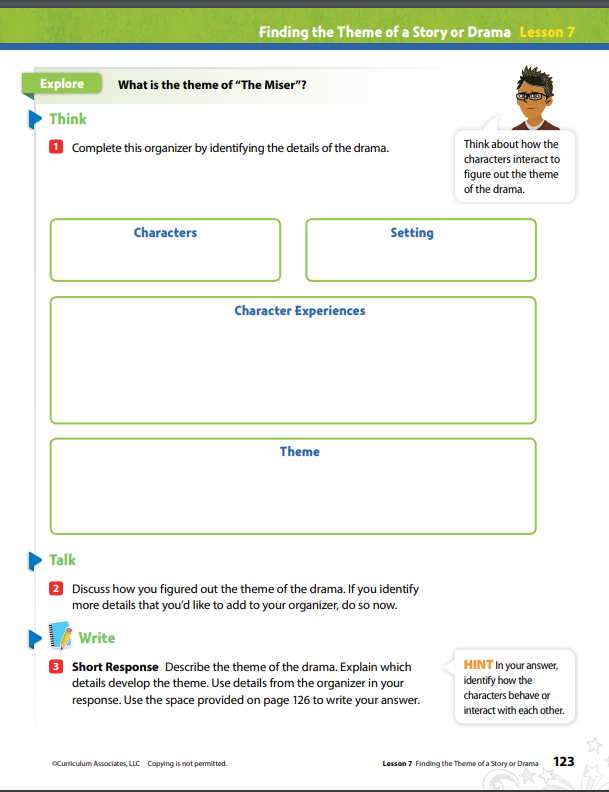Describe the theme of the drama. Explain which details develop the theme. Use the details from the organizer in your response. Remember to have an introduction sentence, supporting details, and a concluding sentence.