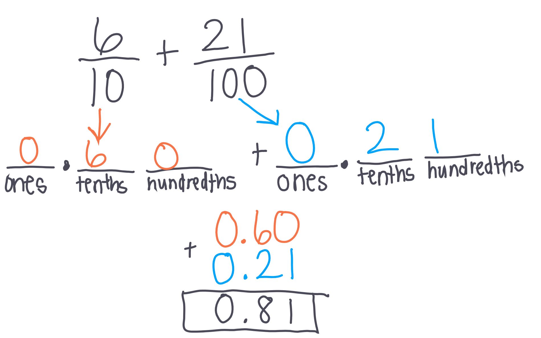 3/10 + 22/1001. Change each fraction into a decimal2. Line up the place values of each number3. ADD