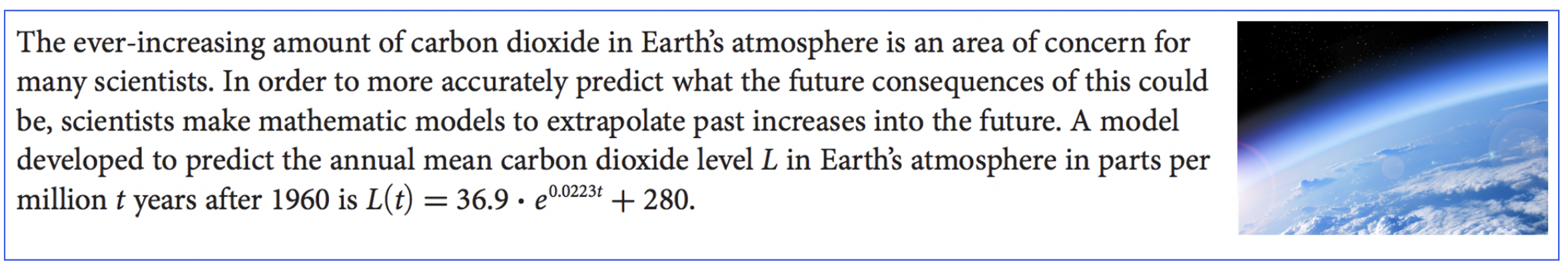 Use the function to determine the level of carbon dioxide in year 2022. (Remember, "t" is how many years AFTER the year given in the problem)