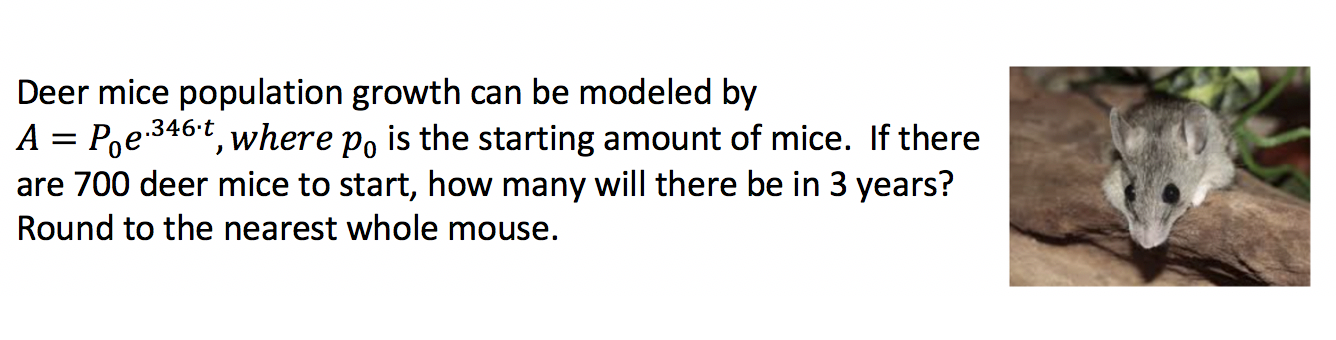 The population of a colony of mosquitos grows according to the function A=1000e^0.588t. What is the size of the colony after 3 days?
