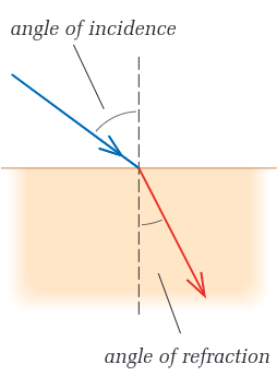 Using the diagram below, describe how the type of medium influences refraction. (For more information, see page 203 of our textbook.)