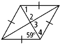 What is the measure of angles 2 and 3 in this rhombus?