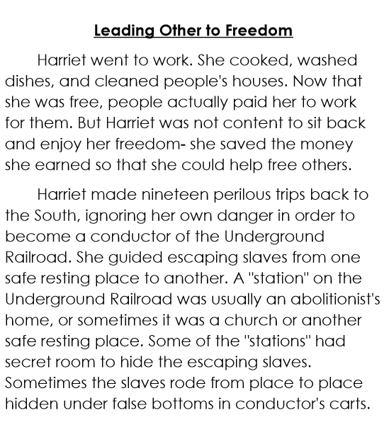 According to the chapter Leading Others to Freedom, how did Harriet help other slaves? Use two details to support your response.