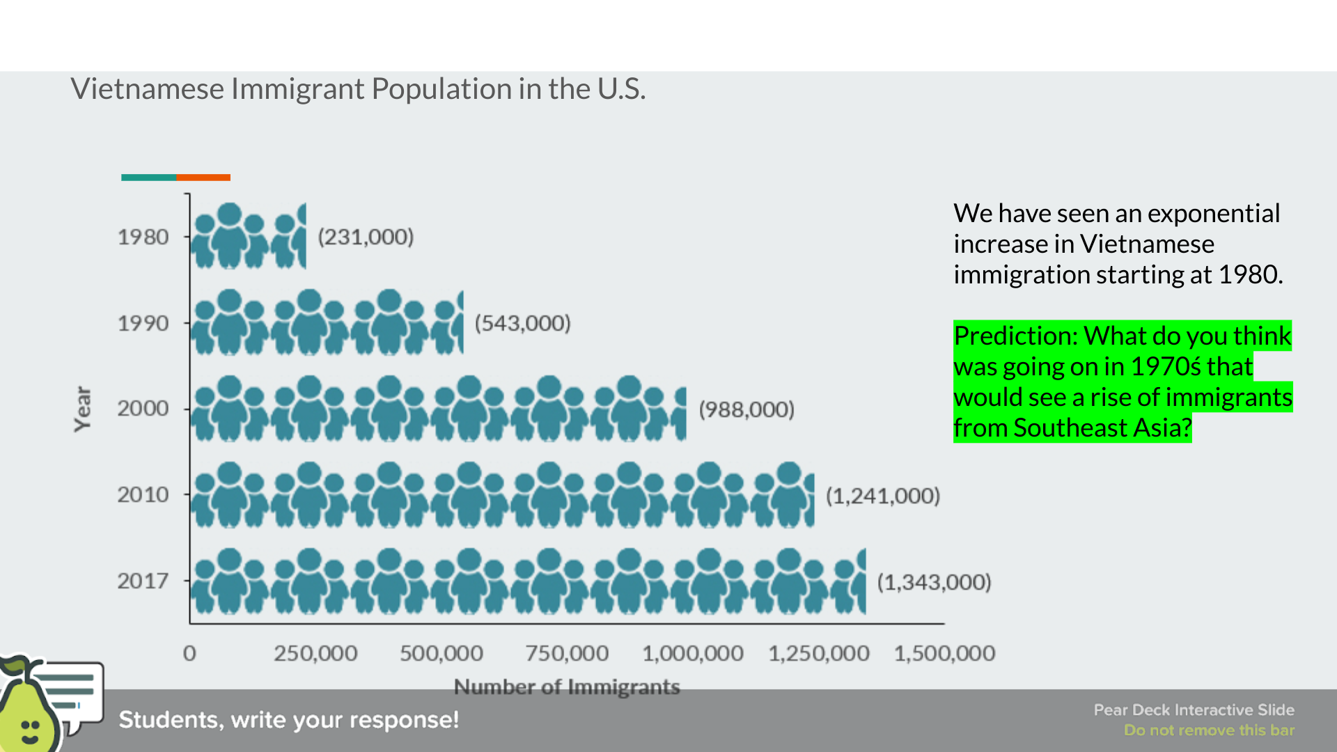 Prediction: What do you think was going on in 1970ś that would see a rise of immigrants from Southeast Asia?