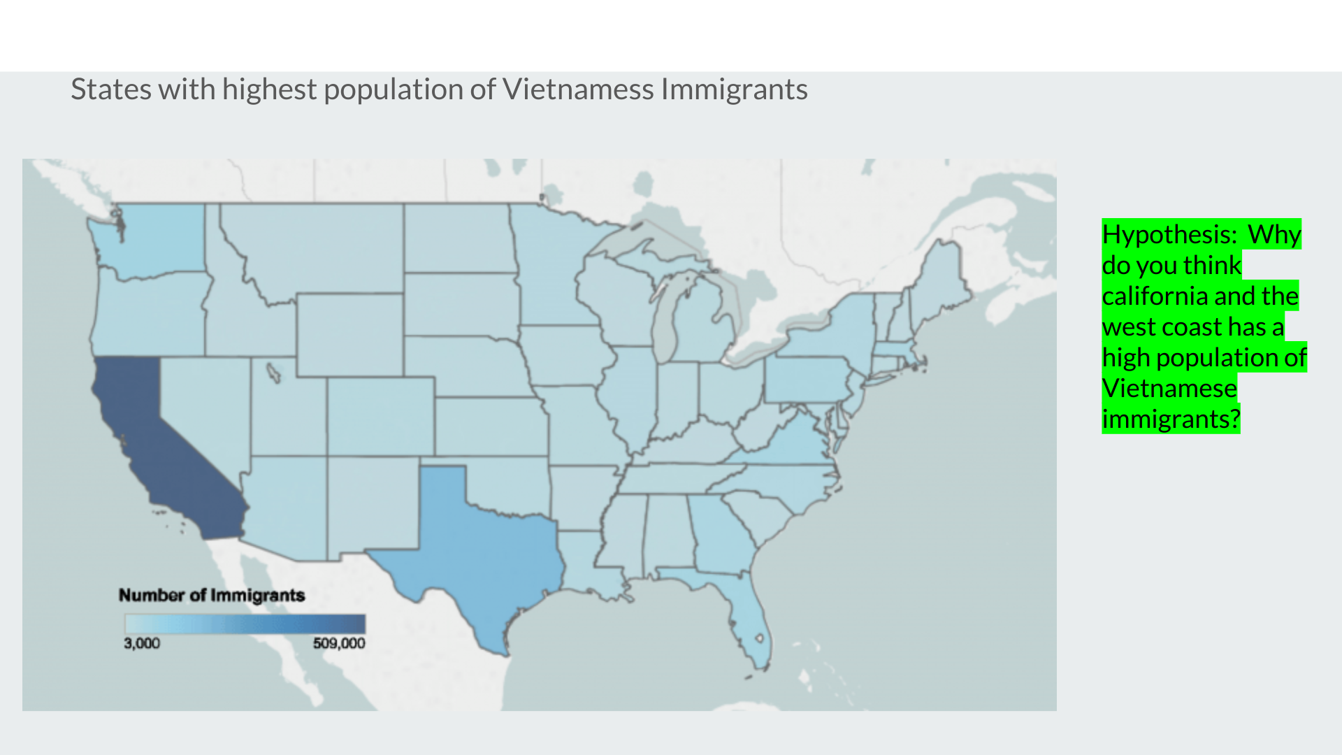 Hypothesis: Why do you think California and the west coast has a high population of Vietnamese immigrants?
